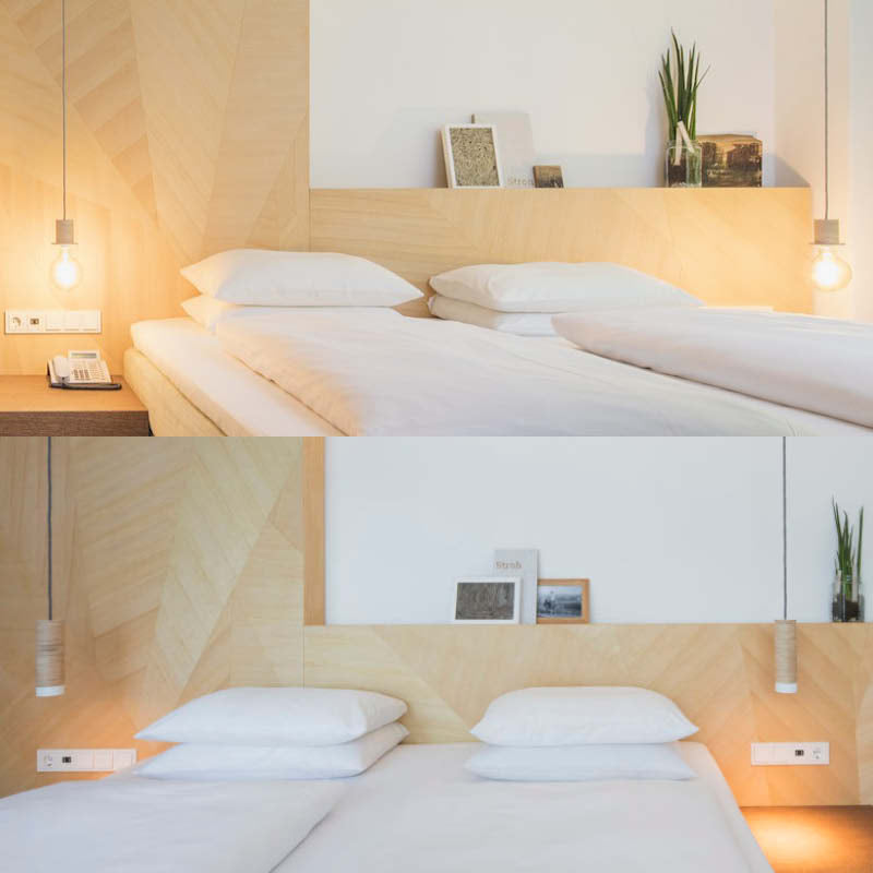 Ein Projekt, welches uns am Herzen liegt, ist die Ausstattung der Zimmer im Creativhotel Luise - ein nachhaltiges Hotel in Erlangen. Der Wunsch waren Nachttischleuchten für ihre Zimmer. Wir kombinierten dort die FAFOO Pendelleuchte und die ZYLA Pendelleuchte.